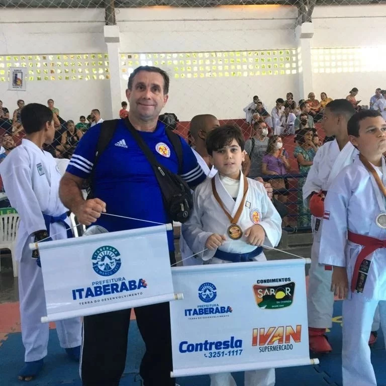 O atleta Daniel Azevedo se destacou conquistando a medalha de ouro no Kata sub 12 divisão de novos após fazer 04 rodadas e a medalha de bronze no Kumite até 40 kg.