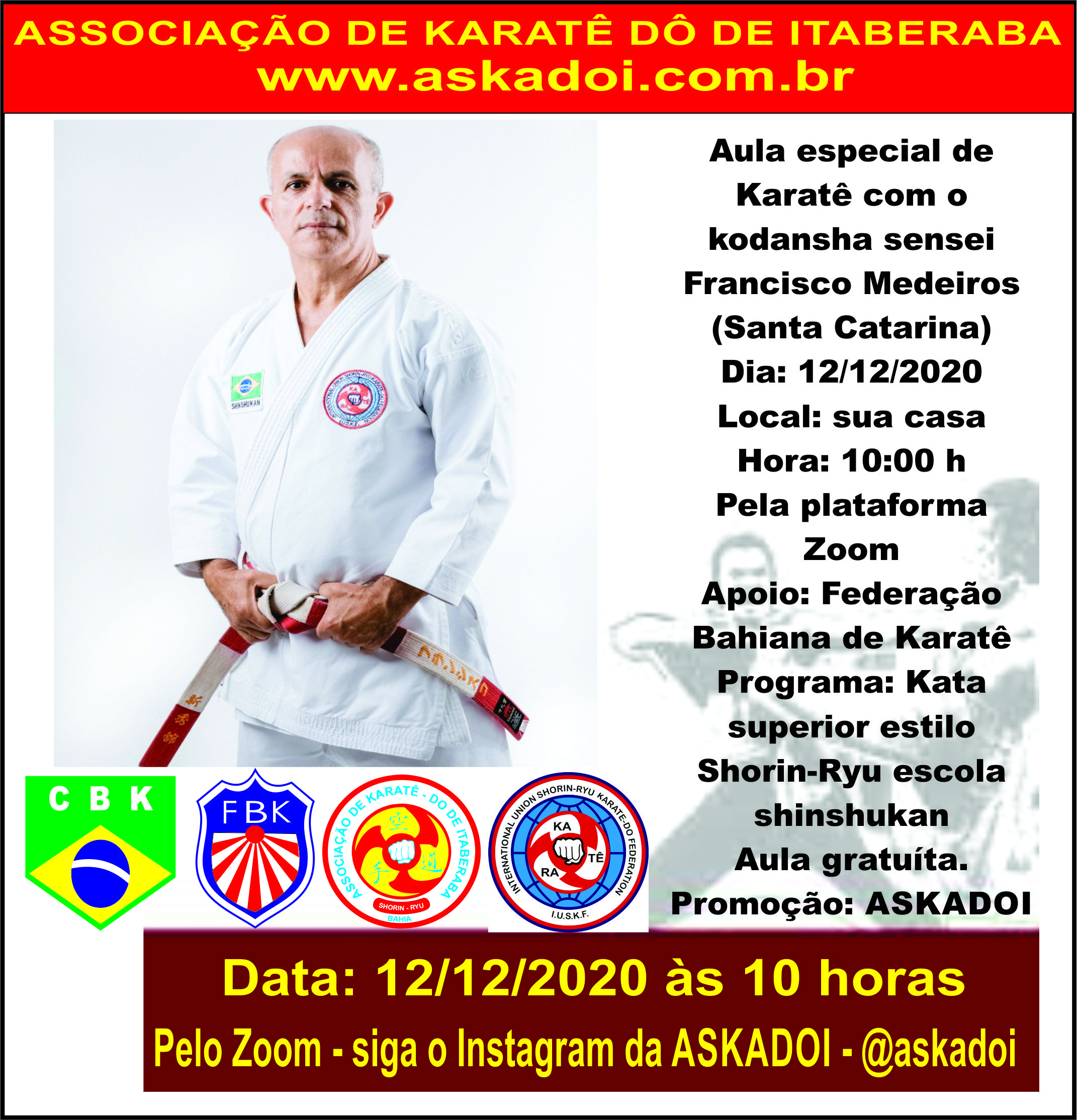 Interessados podem entrar em contato com o diretor técnico da ASKADOI, sensei José Antonio pelo telefone (75) 99137-0059 zap que enviaremos o link.