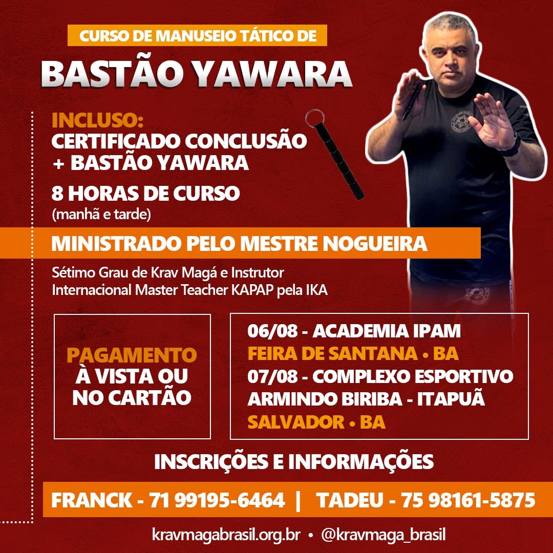 A FBKMK Bahia estará promovendo no dia 06/08 em Feira de Santana o curso do manuseio tático do bastão Yawara e no dia 07/08 esse mesmo curso será ministrado em Salvador.