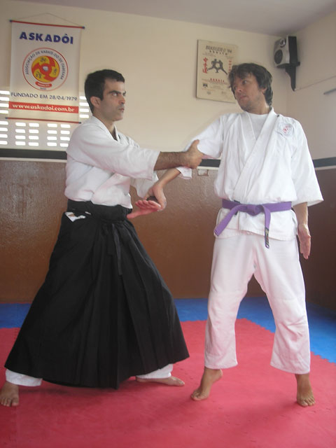 No domingo o Sensei José Antônio (faixa preta 3º Dan – Diretor técnico da Askadoi), participou de uma das aulas e gostou muito das técnicas de torções aplicadas no Aikidô).