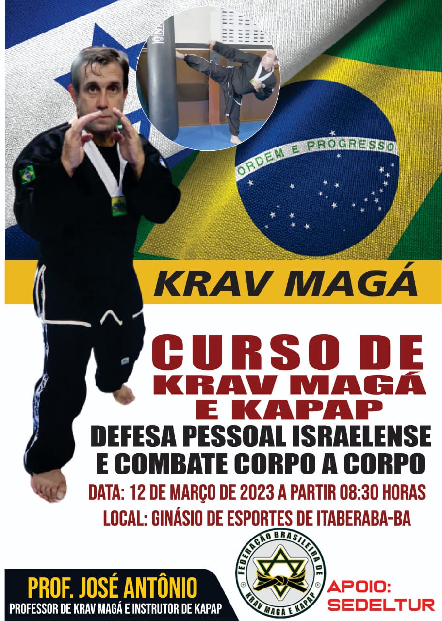 Acontecerá em Itaberaba, no dia 12 de março (domingo), mais um curso de Defesa Pessoal Israelense KRAV MAGÁ. O curso ocorrerá no Ginásio de Esportes, a partir das 08:30 h.